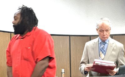 Dejor Jaerail Hill, 34, of Starke (left), leaves a Bradford County courtroom with his lawyer, Robert Rush, after being sentenced to 10 years for aggravated battery and leaving the scene of a crash.