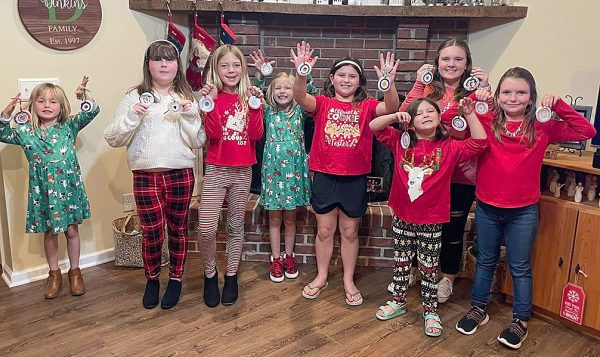 The GRITS girls and their ornaments at Christmas. L-R: Callie S., Cadence M., Sadie T., Ansley S., Shayle H., Katy H., Harley S., Emma G.