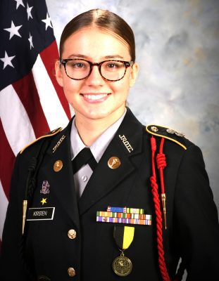 —Isabelle Kirsten, a 16-year-old junior who’s the daughter of Julie Kirsten and Jonny Kirsten. She’s a member of JROTC, FFA and the track and field team. After high school, she plans to enlist in the Army National Guard as an E3, thanks to her time in JROTC.  She also plans to attend Santa Fe College and take ROTC courses at the University of Florida at the same time.