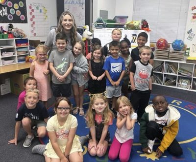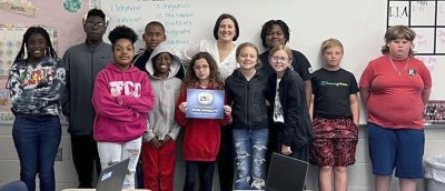 Altrusa member Rachel Rhoden is pictured with Starke Elementary fifth-graders. Pictured (l-r) Dameeann Butler, Noah Davis, Jadia Roddey, Kensen Hankerson, Sterlin Alexander, Macie McCoy, Rhoden, Callay Carter, Adaleigh Wainwright, Tayten Raymond (behind Wainwright), Drake Culverson and Landon Elliott.
