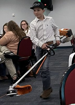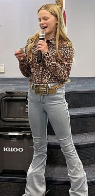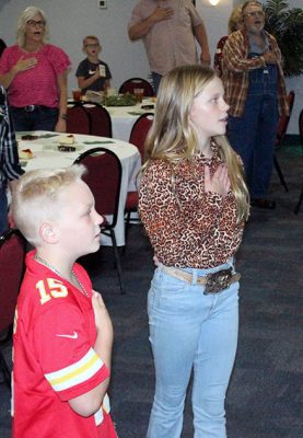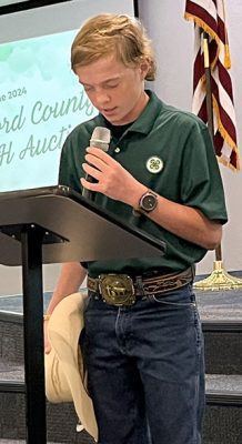 As an event that benefitted the 4-H program, it, of course, featured the help of several 4-H youth. Lane Hartley and Saylor Rhoden led the crowd in the pledge of allegiance and the 4-H pledge, while Dylan Brown provided the blessing for the meal. Youth also displayed the auction items, walking them around the room so bidders could get a better look.