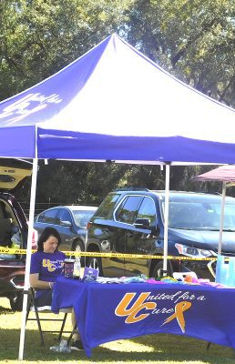 Mendy Whitaker, with United for a Cure, Inc., was on hand to give out bracelets, beads and other brighty colored goodies.