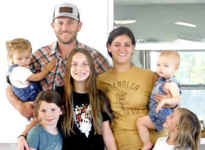 Union County Commissioner Channing Dobbs and his family enjoyed themselves at Raiford Day and even gave out boiled peanuts. Pictured are: Channing Dobbs, Kayla, Ela, Raelyn, Ramsey Kay, Maddie and Bud Dobbs.