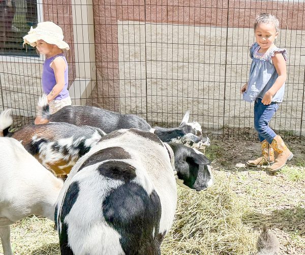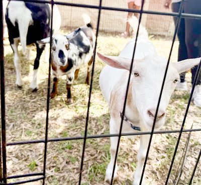 Say “cheese” — goat cheese that is! Goats were a main attraction in the petting zoo at the library. Many children brushed, petted and even chased a few around the pen.