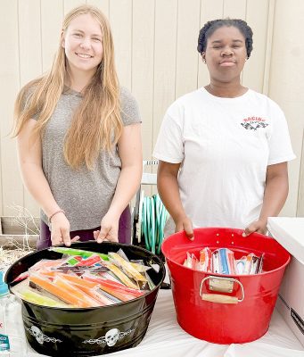 Student volunteers Ava from Santa Fe College and Cana from Bradford High offered cold popsicles for refreshment to all who visited the library’s backyard barnyard.