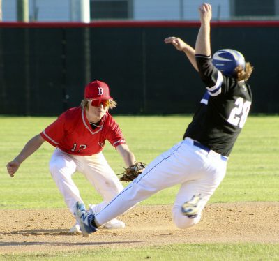 Bradford’s Jeffrey Brugh hit a two-out single in the bottom of the sixth. He advanced to second and third on wild pitches and then scored on a steal of home to tie the score.