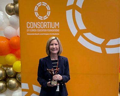 Bradford County Education Foundation President Cheryl Canova was presented with the Jim McKenzie Consortium Champion Award in recognition of her engagement with the Consortium of Florida Education Foundations.
