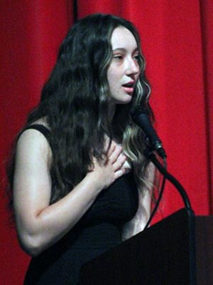 D’on Jeffers, a 2010 BHS graduate and Golden B recipient, shared her life story as the event’s featured speaker. She began by directing the students and everyone else in attendance to refer to the back of the programs they received, upon which the following was printed: Blessed is the person, indeed, who in this life can find a purpose that can fill their days and goals to fill their mind; this is your day — a world to win, great purpose to achieve; accept the challenge of your goals, and in yourself believe
