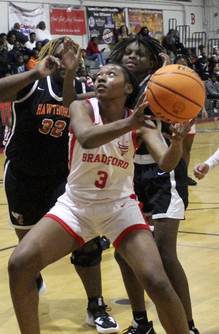 Bradford (8-5) fell behind 8-2 in the first quarter, but then outscored Hawthorne 7-1 to tie the score going into the second quarter. Nichelle Brown got the run started, scoring on a break opportunity and adding a subsequent free throw. Ar’Nayshia Griffin and Jada Hankerson each had a basket to make the score 9-9.