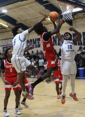 Despite Newberry’s depth advantage — the Panthers sometimes sub out all five players on the court — the Tornadoes hung with the Panthers in the first quarter, making 6 of their first 9 field-goal attempts. Breion Johnson scored Bradford’s first points on a layup off a K.J. Taylor assist. Jordan Cason scored off an offensive rebound, while Taylor and Maliki Cobarris each had a basket to put the Tornadoes ahead 8-7.