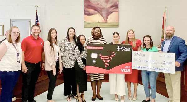 Bradford High School and VyStar Credit Union celebrated four years of partnership at the school board meeting Monday with a check presentation.