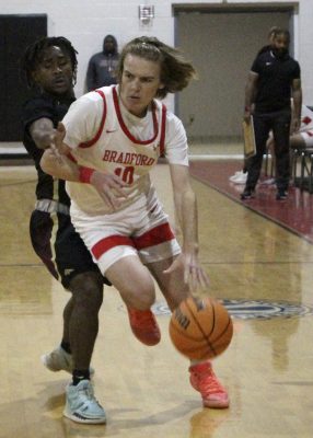 A Keith Taylor drive to the basket toward the end of the first half gave Bradford its only field goal of the second quarter as the Tornadoes went into halftime trailing 38-12.