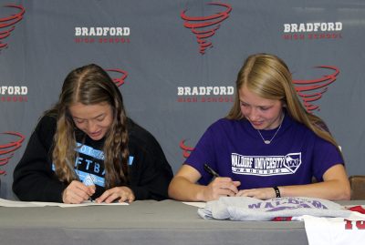 Seeing Allie Funderburk and Hannah McFarland together on a softball field just seems so natural that it made perfect sense for the two Bradford High School seniors to be seated next to each other when they signed their letters of intent during a March 18 scholarship signing ceremony in the BHS media center.