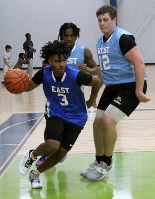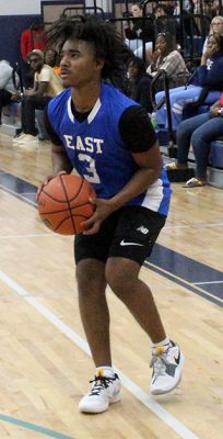 Damarion Hankerson handles the ball in his team’s game against the West all-stars.