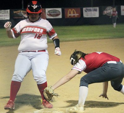 The Tornadoes (3-6) held a 4-3 lead before scoring eight runs in the fourth. Bradford loaded the bases with one out on a Rylie Blankenship single, an error on a fly ball hit by Tinsley Higginbotham and a walk by Keegan Yowell. Summer Sutton drove in two runs on a single. Madison Highland, after Kallie Yowell was hit by a pitch, drew a bases-loaded walk, while Carly Beggs drove in another run on a ground out.