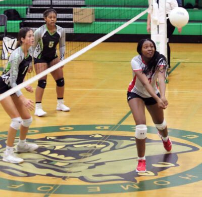 Kencie Wainwright led the team in kills with 10, while Raven Ford added seven. Ford also had 10 digs and four blocks.