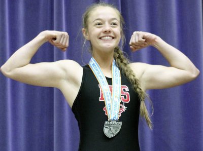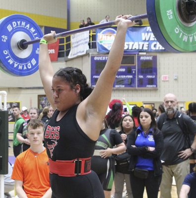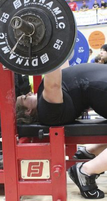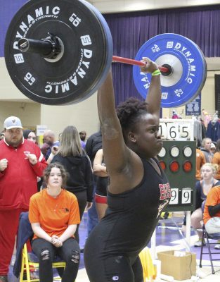 Traylor’s bench press of 220 represented a 40-pound improvement from last year’s state finals, when she placed fifth. She also improved by 15 pounds in the clean and jerk, with a best total of 195.