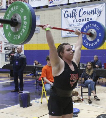 No one was going to come close to beating Reeves in the unlimited class, but if Reeves hadn’t been a participant, the Tornadoes still would’ve won that class by a comfortable margin. Traylor’s overall total of 415 put her 30 pounds ahead of Marianna’s Kelis Garrett and South Sumter’s