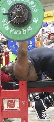 It was a rough start for McFarland, who had two bench-press attempts disqualified as judges ruled her rear end came up off the bench. Lifters’ rear ends and heads must be in contact with the bench throughout their attempts. One of the disqualified lifts was a 125 total, which would’ve