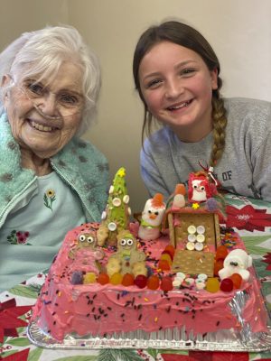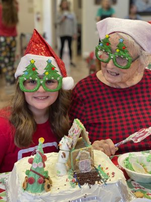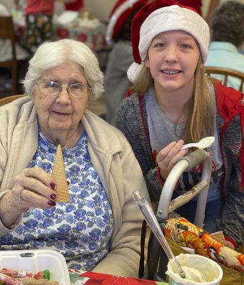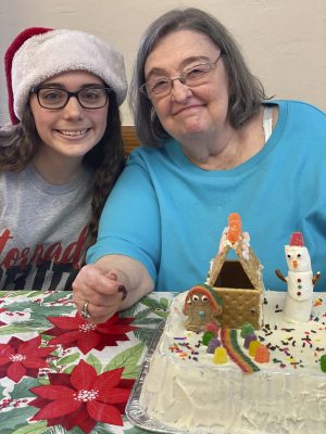 Cheerleader Laney Griffis and Mary Sue Tomlinson were judged the winners of Parkside Assisted Living Facility’s Christmas cake-decorating contest, which was held on Dec. 4. Photo provided courtesy of Melissa Gillenwaters.
