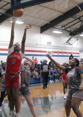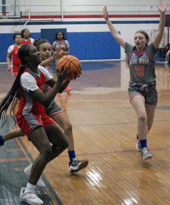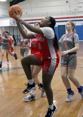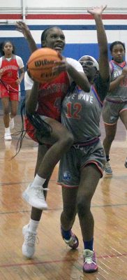 Wynter Barrington (left) goes up for a basket. Photo by Cliff Smelley.