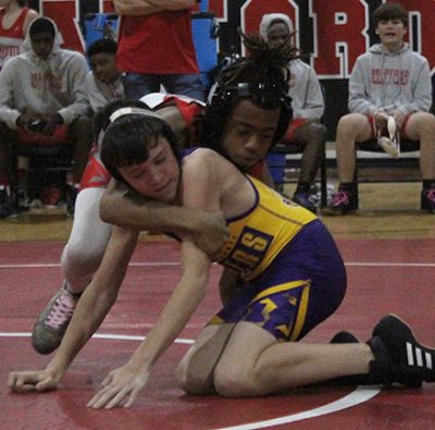 The Tornadoes got their first win with Demetrius Hunter pinning his opponent in 22 seconds to win the 95 class.