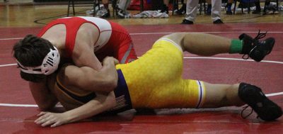 Lake Butler didn’t have a wrestler in the 190 class, which gave Bradford a forfeit win and a 53-48 lead. Kaison Pierce then pinned his opponent in 2:42 to win the 215 class.