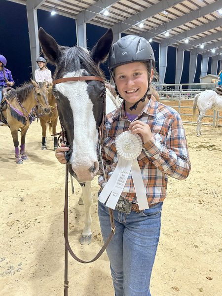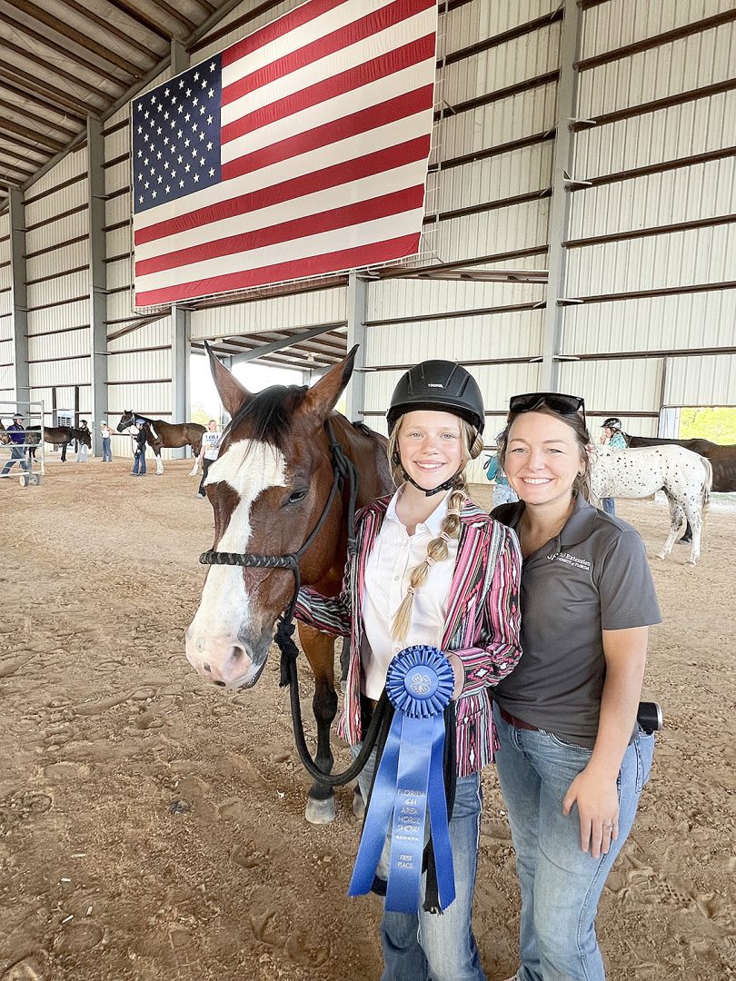 Blue ribbon! Saylor Rhoden and 4-H agent Bailea Scarbrough at the North Area Horse Show.