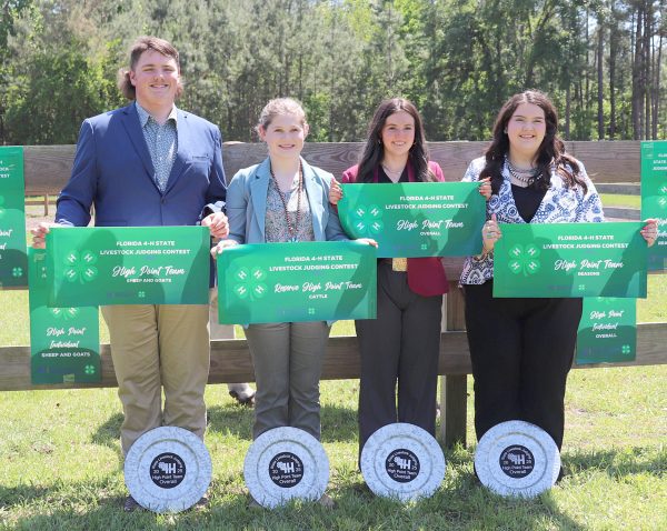 Bradford the winning team at the 2025 Florida 4-H State Livestock Contest. Pictured are Jake Markham, Macie Wilson, Kelsey Reddish and Madison Stein.