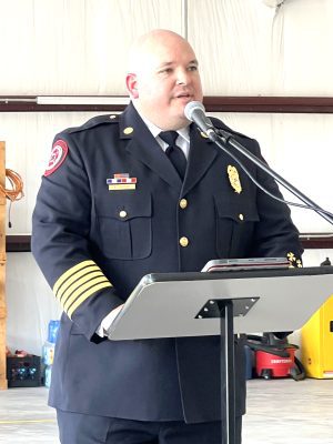 Fire Chief Ben Carter opened the ceremony by welcoming everyone and expressing gratitude to the county commissioners and state representatives who contributed to implementing and funding the new fire engines.