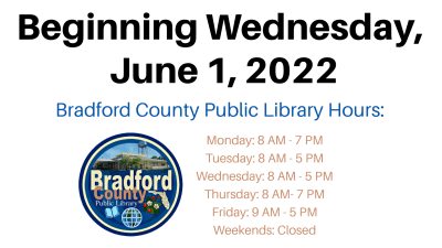 The Bradford County Public Library will kick off its Summer Library Program for children ages 2-12 with the “Wild Wonders Animal Show” with Michael Rossi on Thursday, June 9, at 11 a.m. “Dinosaurs among Us” is an interactive and educational program that teaches and entertains children about the wonders of the Animal kingdom. See local and exotic animals that use music, story and humor to enhance understanding of the animal world. Space is limited, so please arrive early to ensure seating.