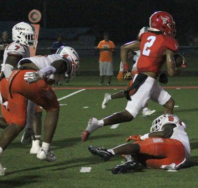 Bradford didn’t need much time to take the donut off its side of the scoreboard. Dae’Jon Shanks threw a 48-yard pass to Chalil Cummings on the Tornadoes’ first play from scrimmage, which put them at the Eastside 20. Willie Pollard then had a 14-yard run to the 6. Shanks carried the ball for what seemed to be an apparent touchdown before fumbling at the 1-yard line. Fortunately for Bradford, Chason Clark fell on the loose ball in the end zone. Branden Williams’ run on the two-point conversion made it an 8-0 game 41 seconds into the game.