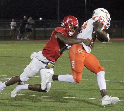 The Rams (2-2) gained only 12 yards in the first quarter, but threatened to score on their first possession of the second quarter. Passes of 33 and 26 yards moved Eastside to the Bradford 22. Bradford’s Jordan Daniels made a tackle for a 3-yard loss, but the Tornadoes were penalized for pass interference on consecutive pass plays in the end one, resulting in first-and-goal from the 6. Devon McBride and Jeremiah McKenzie teamed up to drop a ball carrier for a 2-yard loss before two straight incomplete passes forced the Rams to attempt a 25-yard field goal. Elijah Dressel’s kick was blocked by Jyquez Cason