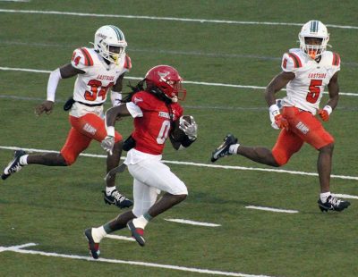 With 1:30 remaining in the third quarter, Brazell did it again, returning an interception approximately 40 yards for a score. Clark caught Shanks’ pass on the two-point conversion to make the score 28-0.