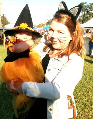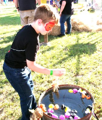 The air was filled with the smell of kettle corn, barbecue, and Philly cheese steak. The field was lined with activity booths for the costumed, and not, children to play a game and walk away with a little prize. There was Two Liter Ring Toss and Ax Throwing. (No, not a real ax.) There was a Go Fishing booth, Treasure in the Hay and Milk Bottle Bowling along with Ski Ball and Football Tire Toss. And a mini zip line with safety spotters.