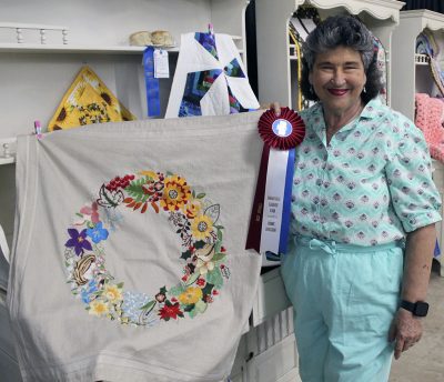 Beckie Burkett earned a best-overall rosette for a tablecloth in the Home Division at the Bradford Agricultural Fair.