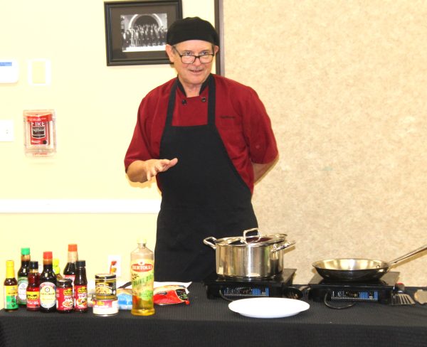 Celebrity Chef Warren Caterson entertained and informed around a dozen audience members during his Chinese cuisine cooking class at the Bradford County Library on Wednesday, November 6.