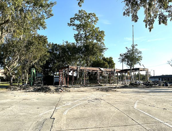 Workers began tearing down the former Checkers Drive-in at the corner of U.S. 301 and Lafayette Street in Starke.
