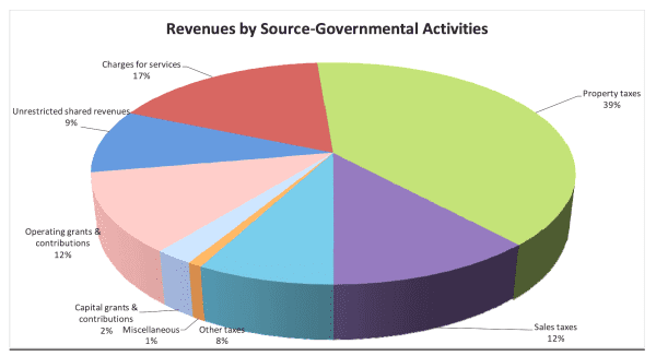 The county received 39% of its revenues from property taxes and an additional 17% by charging for services such as permits and garbage collection.