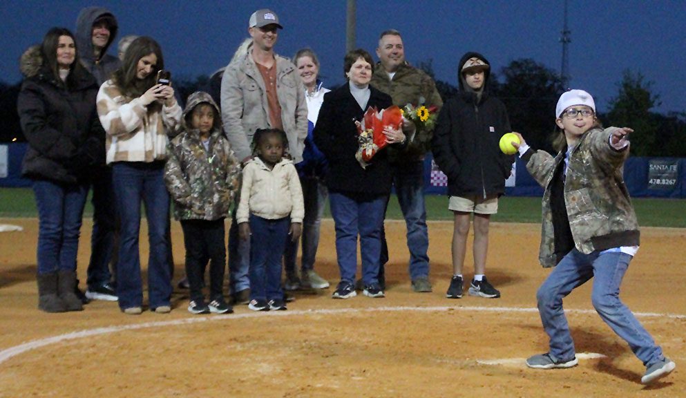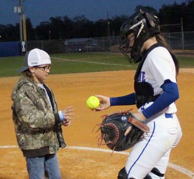 Powell’s family members, including his wife, Karen, gathered on the field and watched as great-grandson Kanner threw a ceremonial first pitch to KHHS catcher Amber Wagner.