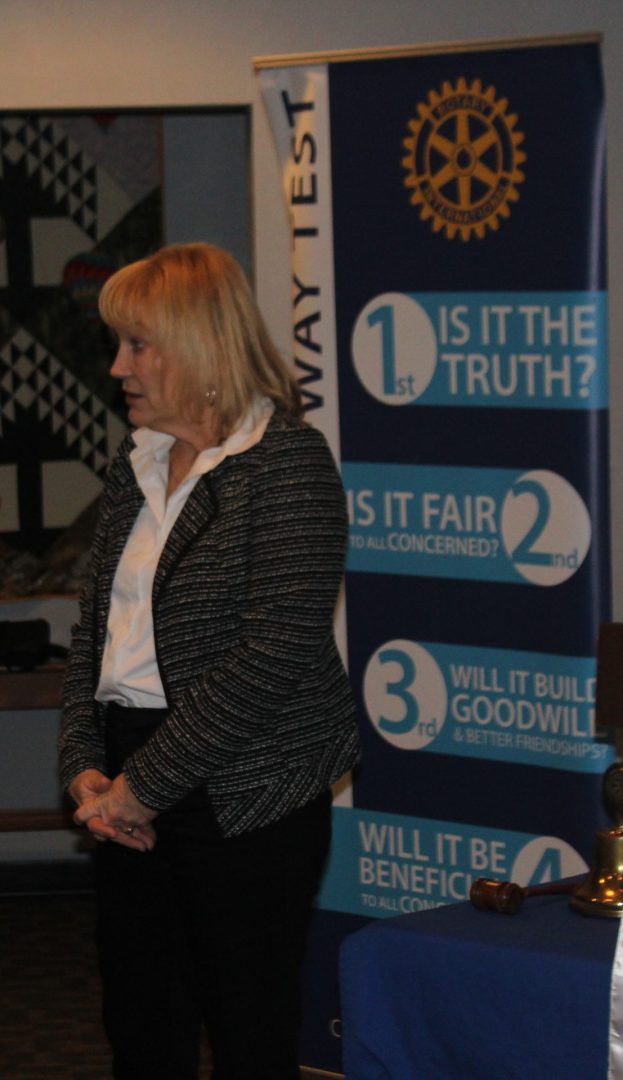 “I can stand up here and tell you that last year, there were three students that I know graduated because of the services we provided to those students,” she told the club. “Not only did they attend and pass their tests, but they also walked across that stage— three students. That’s huge.”
