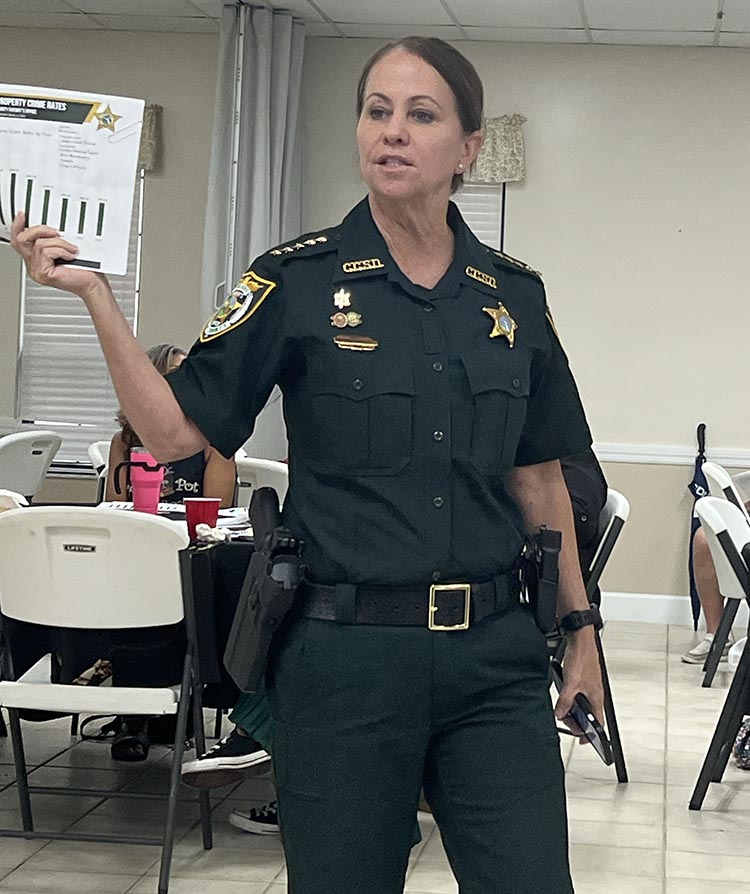 Clay County Sheriff Michelle Cook spoke at a Sheriff’s Net meeting in Keystone Heights in which she reviewed the county’s crime statistics.