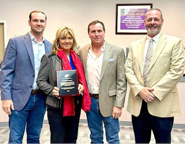 At the December school board meeting, the Union County School District was honored to recognize Bart Andrews and Andrews Site Prep for their continued support for the students of Union County. In addition to being a sponsor of multiple athletic teams, Andrews Site Prep generously supported the athletic programs of Union County High School and Lake Butler Middle School by donating score-boards for the UCHS baseball field and gym, as well as O.J. Phillips Complex where LBMS baseball and softball games are played. Andrews Site Prep has also supported students at the Union County Livestock Association Fair as they show and sell their market animals The school district is greatly appreciative of the support Bart Andrews and Andrews Site Prep continually provides. His generosity has provided many additional benefits students have been able to enjoy. Andrews is pictured with Su-perintendent Mike Ripplinger.At the December school board meeting, the Union County School District was honored to recognize the West Fraser Company. Carley Loznicka from West Fraser was present to accept a plaque of appreciation from Superintendent Mike Ripplinger (pictured above). West Fraser has been a strong supporter of the school district by providing donations to the Union County Education Foundation to support local families, providing support and assistance to the faculty and staff, and supporting students as they show and sell their market animals at the Union County Livestock Association Fair. In addition, West Fraser has also donated MacBooks and backpacks to the top 10 graduates for the slasses of 2022 and 2023. West Fraser is a valued business partner dedicated to the betterment of the students and staff of the Union County School District. The school district is thankful for West Fraser and Carley Loznicka their support and grateful for all they do for the students and staff of Union County.At the December School Board Meeting the school district was honored to recognize The Roberts Companies for their longtime and continued support for the students of Union County. Avery Roberts, his wife Twyla Roberts, and son Austin Roberts were present to accept a plaque of recognition and the gratitude of the district from Superintendent Mike Ripplinger. Avery Roberts has been a supporter of the Union County School District for decades and has provided support for many athletic teams, the FFA, students showing and selling their market animals at the Union County Livestock Association Fair, and was an instrumental partner in the purchase of the Jumbotron at Marvin H. Pritchett Field. He is also a strong advocate for the district in Tallahassee, working tirelessly to encourage officials in state government to consider the needs of Union County. Roberts and his family are deeply committed to the Union County School District and the students it serves. The district is grateful for the many years of his family’s support and for the opportunities he has provided to students through his generosity.