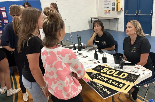Shannon Riggs of Shannon’s Unlimited tells students about the licensing requirements in the cosmetology field. Photo: Dan Hildebran, Telegraph Staff Writer.