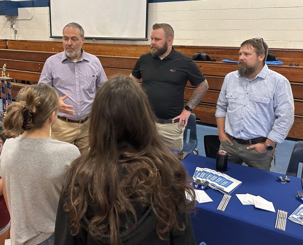 Clay Electric’s (l-r) Tom Rozier, Nathan Wagner and John Skipper explain opportunities available in the utility’s IT and cyber security departments. Photo: Dan Hildebran, Telegraph Staff Writer.
