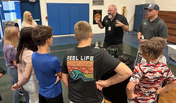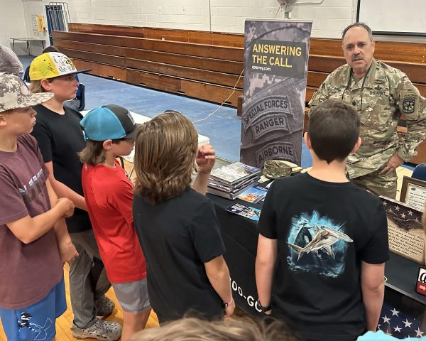 Lt. Col. Richard Hall, the JROTC instructor at Keystone Heights Junior-Senior High School, talks to students about opportunities in the military. Photo: Dan Hildebran, Telegraph Staff Writer.