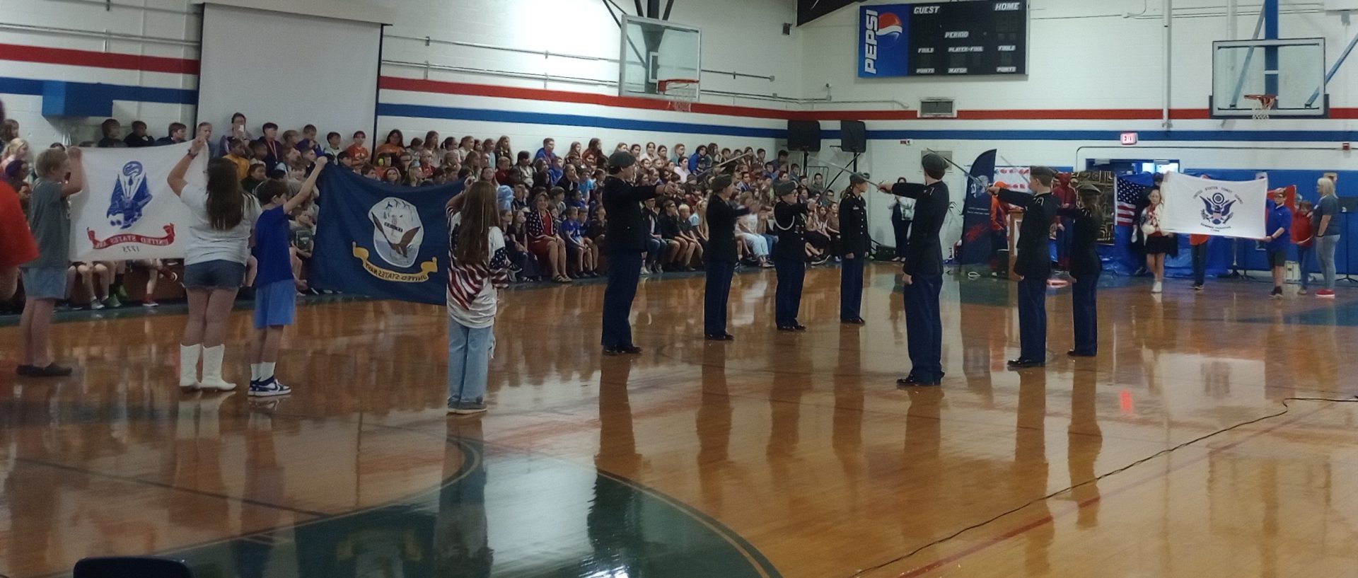 Lastly, the event had the American Flag parade around the gym, Taps played by Reagan Sames, and the JROTC Sabre Guard performing an Arch of Sabre while presenting the military flags.