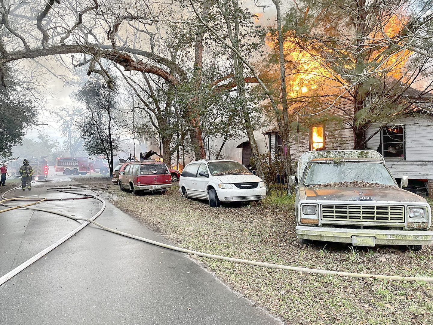 Bradford County Fire Rescue was dispatched around 4:15 p.m. to the 10000 block of Florida Avenue where a home near the intersection of South Division Avenue and Pine Street was ablaze under a canopy of old trees.