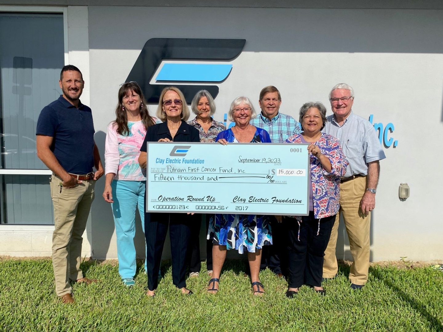 KEYSTONE HEIGHTS— The Clay Electric Foundation donated $15,000 to the Putnam First Cancer Fund, marking the largest donation the utility’s nonprofit made in September. The foundation is funded by Clay Electric’s Operation Round Up, in which members round up their electricity bills to the next whole dollar. The foundation contributed $50,100 to eight nonprofit organizations in September.