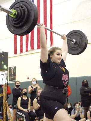 Haleigh Crawford won the 110 class with a 150 total, while Breann Ponce won the 129 class with a 195 total. Jordan took the 154 class with a 290 total, while Bakken’s 315 total topped the 183 class. Gabby Oliver won the 199 class with a 310 total.